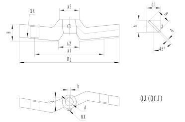 | DJ | d | D1 | h | h1 | 螺栓d0 | b | t | N/n 不大于 |